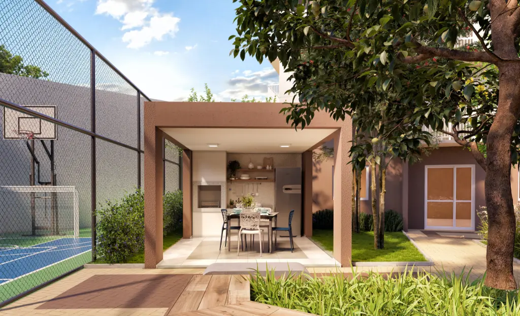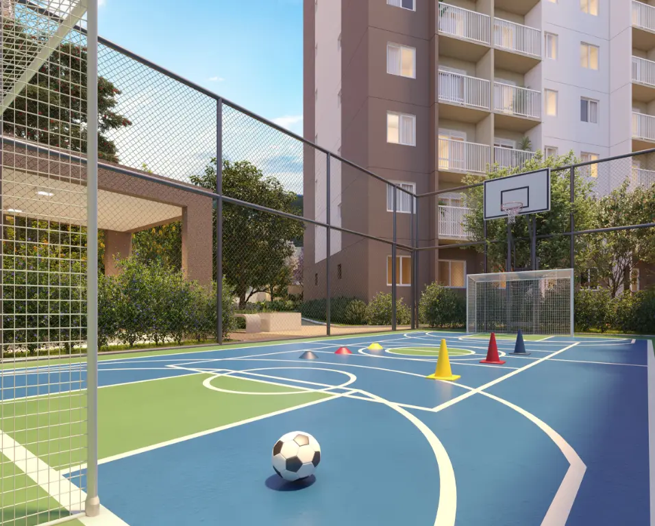 Torre moderna com arquitetura contemporânea Portaria 24h com controle de acesso Sistema de segurança e monitoramento Elevadores modernos Hall de entrada decorado Áreas comuns entregues equipadas Lazer completo para toda a família: Piscina adulto e infantil Churrasqueira Salão de festas Espaço gourmet Playground Brinquedoteca Academia equipada Quadra esportiva Espaço pet