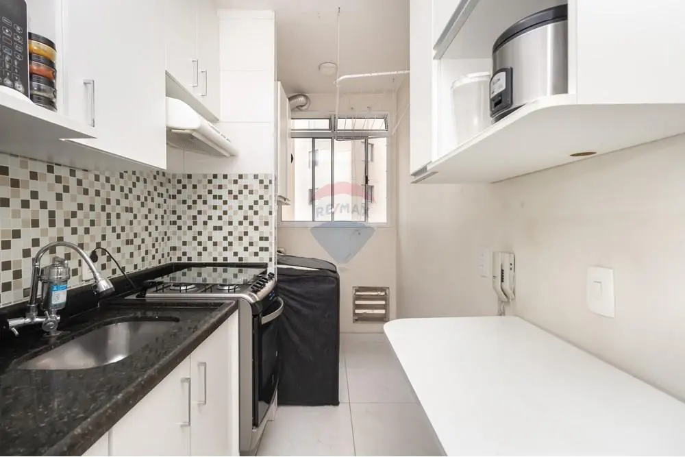 -lavanderia funcional, integrada à cozinha.