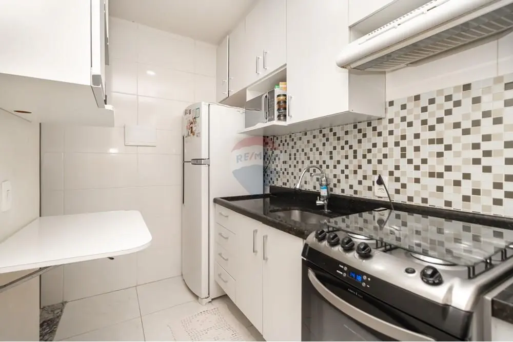 - cozinha moderna, com móveis planejados, tampo de granito e mesa embutida;