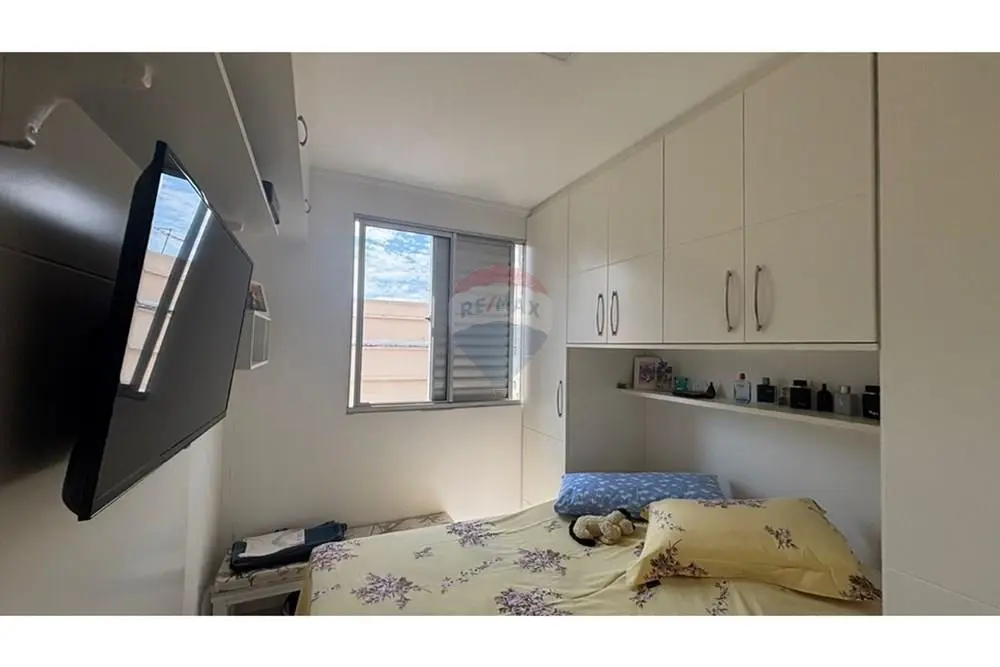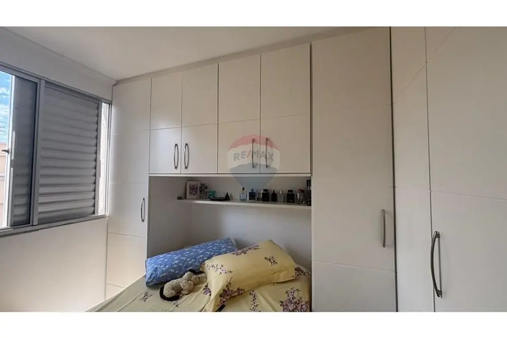 Os dois quartos são com móveis planejados que incluem armários espaçosos, prateleiras inteligentes e escrivaninha.
