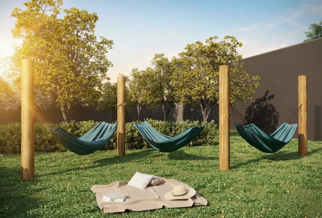 Infraestrutura Condominial Piscina adulto Academia Bicicletário Brinquedoteca Churrasqueira condominial Elevador social Lavanderia Pet place Playground Portaria Quadra poliesportiva Redário Sala de jogos Salão de festas Segurança