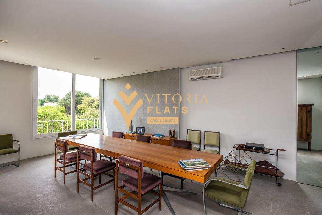 Além disso, conta com ar-condicionado, persianas elétricas na sala e no dormitório, persiana manual no escritório e uma garagem ampla com mezanino, com opção de alugar outra do condomínio.