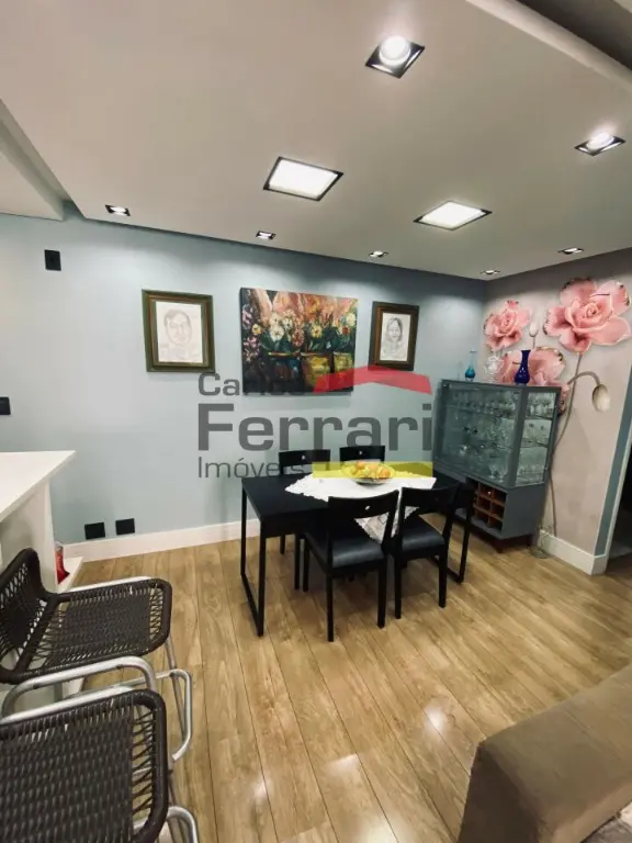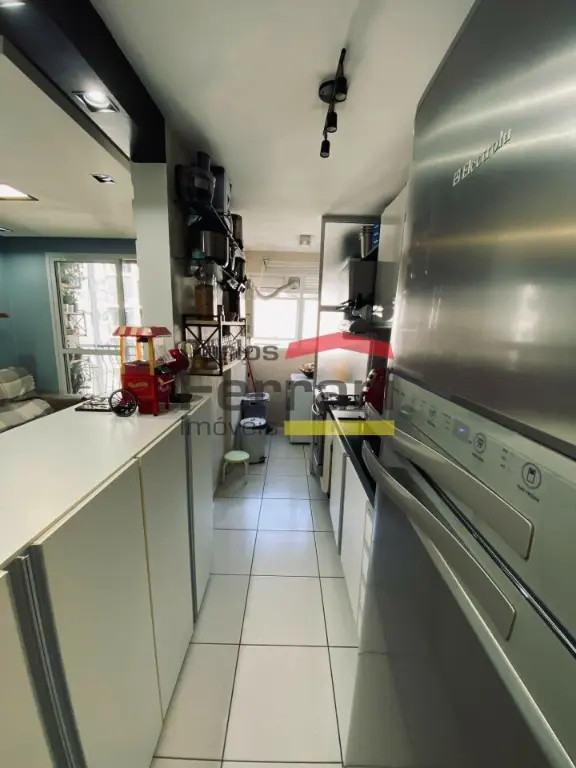 Apartamento de 56m², com 2 dormitórios, sala 2 ambientes, sacada com fechamento em vidro articulado, cozinha com pia em granito, banheiro com box de vidro e armário, área de serviço e 1 vaga de garagem.