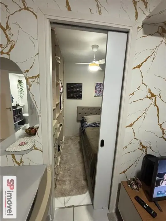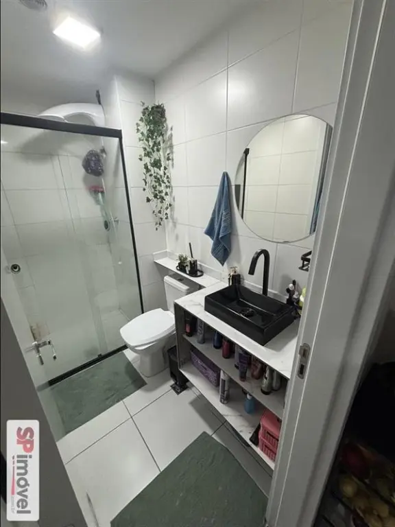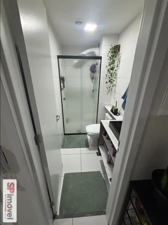 Aparentemente com 2 dormitórios, cozinha mobiliada e banheiro com box de vidro.