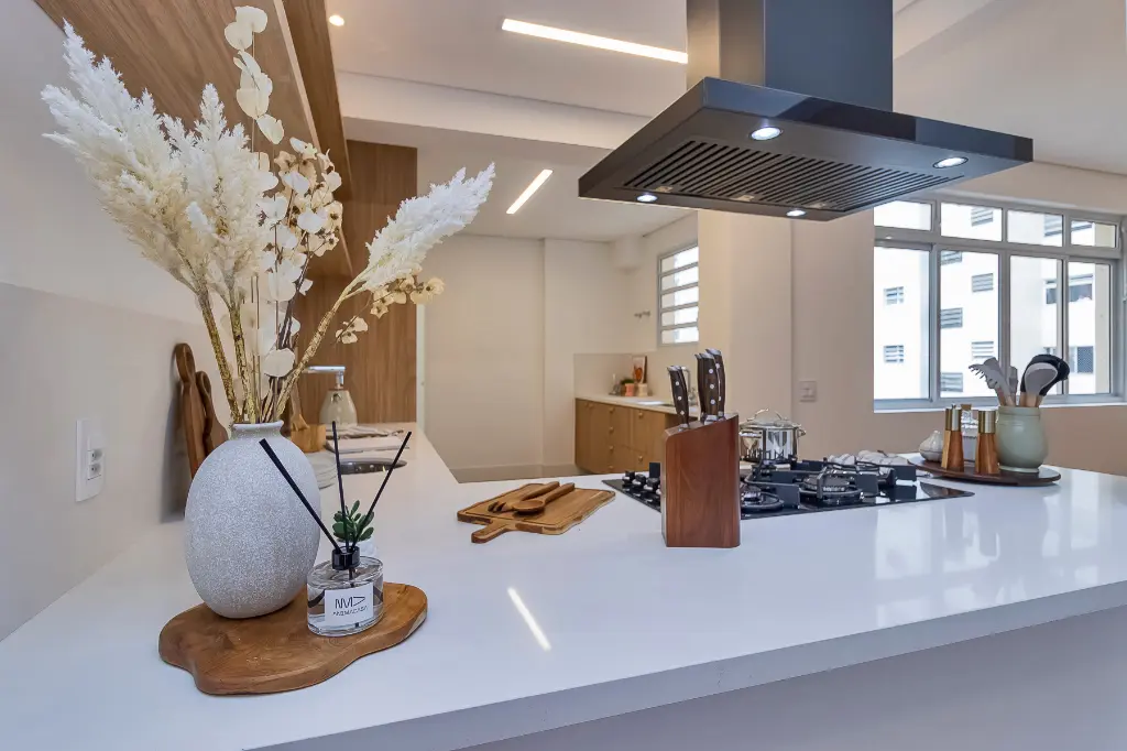 Apto será entregue com marcenaria (cozinha, área de serviço, gabinetes dos banheiros), cooktop, coifa, forno elétrico e aquecedor a gás.