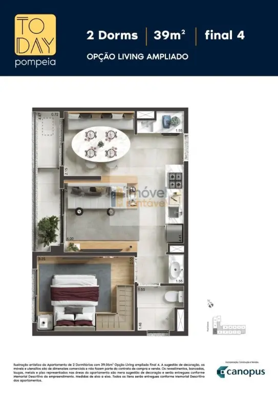 R$ 571.187,56 va´lido para unidade 203 de 38,96m2 2 Dormito´rios R2V