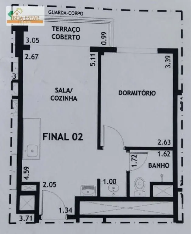 32 m² bem distribuídos
