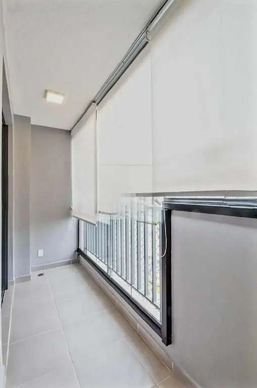 Varanda com fechamento em Vidro e Persiana Rolô de 1%.