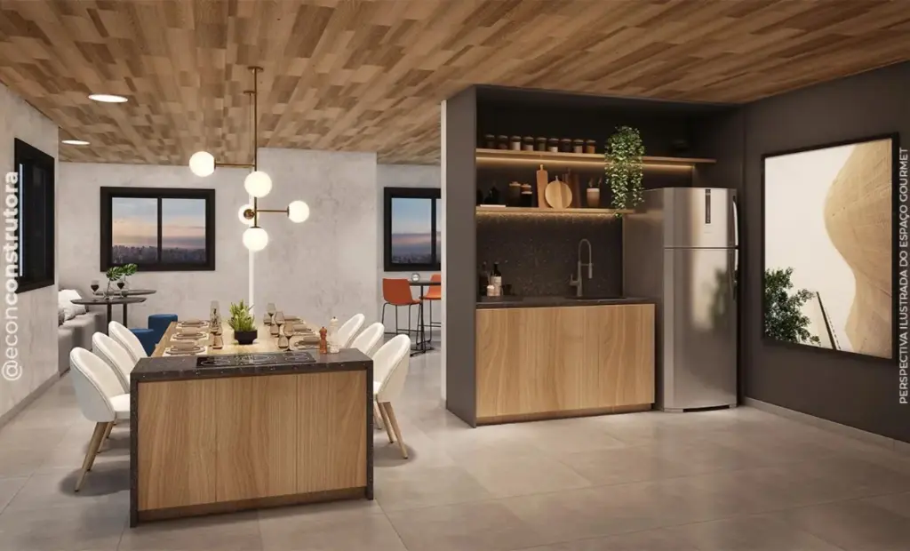 Com opções de plantas: 2 dormitórios com suíte (54 m² e 56 m²). Todas as unidades contam com terraço gourmet e churrasqueira a carvão, oferecendo o espaço ideal para momentos de convivência e relaxamento.