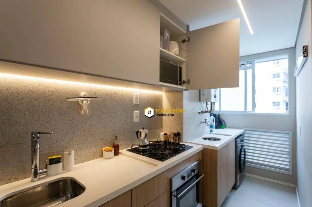 * A venda inclui todos os móveis e eletrodomésticos: cooktop, forno embutido, micro-ondas (opcional), geladeira, mesa de jantar com 4 cadeiras e sofá retrátil.