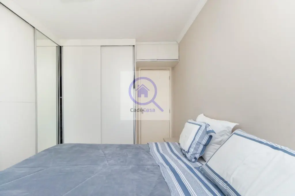Os quartos, a cozinha e o banheiro estão equipados com armários embutidos, otimizando o espaço.