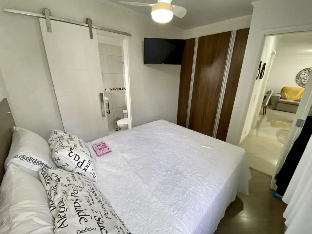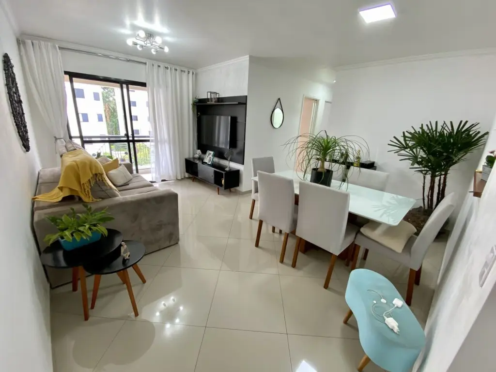 Este imóvel dispõe de 3 dormitórios todos com armários ( 1 suíte ), sala para dois ambientes com sacada, cozinha com planejados, lavanderia com divisória e dispensa, e 2 vagas de garagens.
