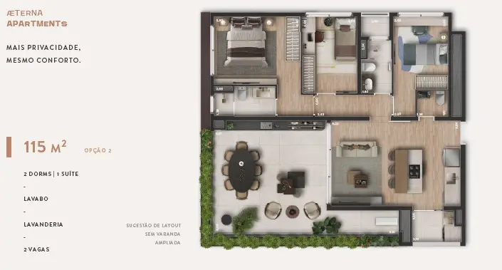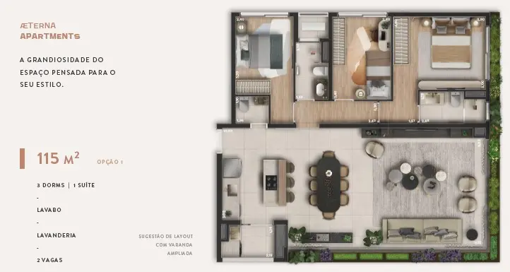 33m² | 1 Dormitório sem vaga, 66m² com 2 dormitório sendo suítes, lavabo e 1 vaga de garagem, 115m² 3 dormitórios, dois banheiros sendo uma suíte, lavabo 2 vagas de garagem e Lazer Completo