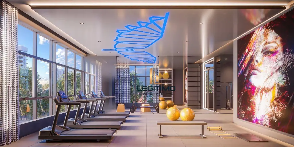 Lazer completo com piscina, salão de festas, academia, deck molhado, solarium e churrasqueira..