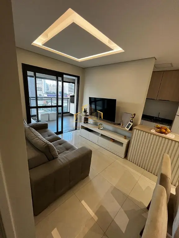 São 61m², 2 dormitórios (1 suíte), sacada, sala, 2 banheiros, varanda gourmet, área de serviço, cozinha, armários planejados, varanda envidraçada, 1 vaga de garagem.
