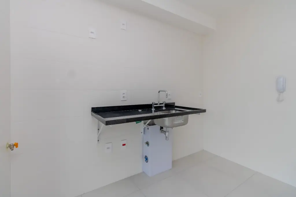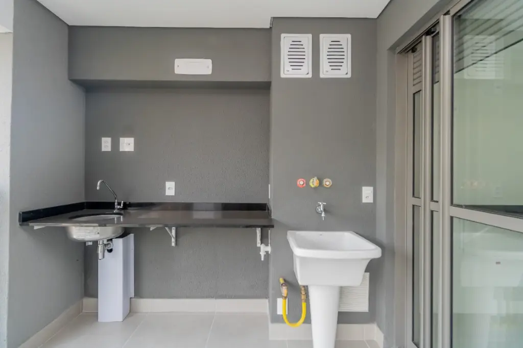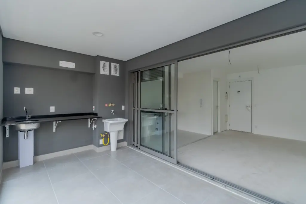 Imóvel com sacada gourmet, sala ampla para 2 ambientes, lavabo, hall de distribuição, 1 dormitório suíte com varanda, cozinha aberta, área de serviço, estrutura para ar condicionado, 1 vaga de garagem e portaria 24 horas.