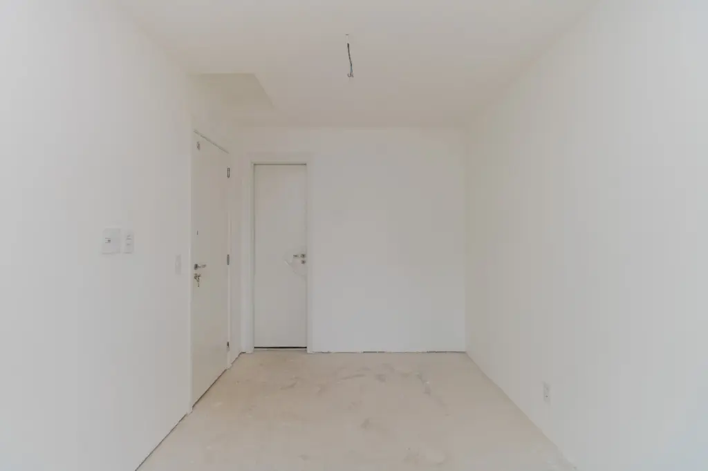 O apartamento está no contrapiso, pronto para ser customizado pelos novos proprietários.