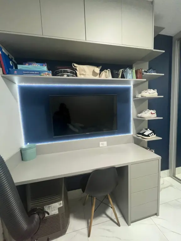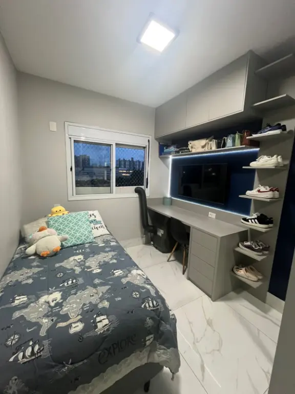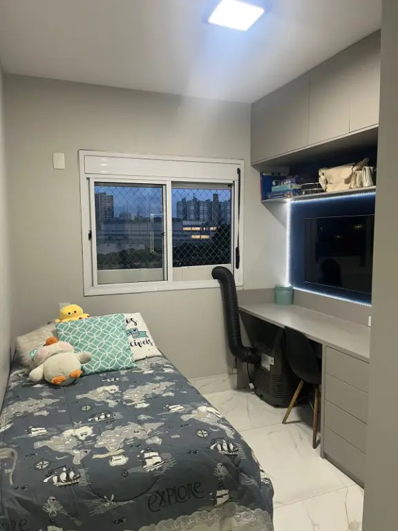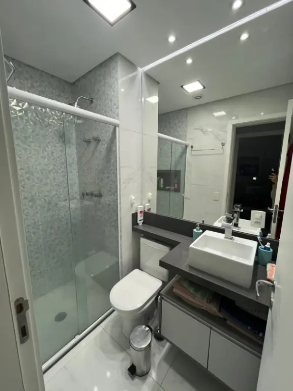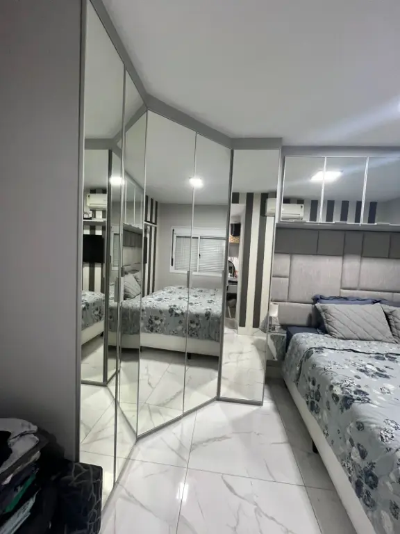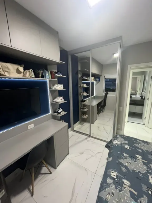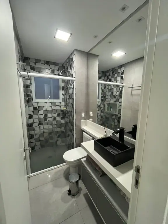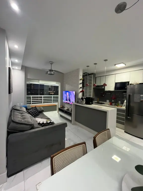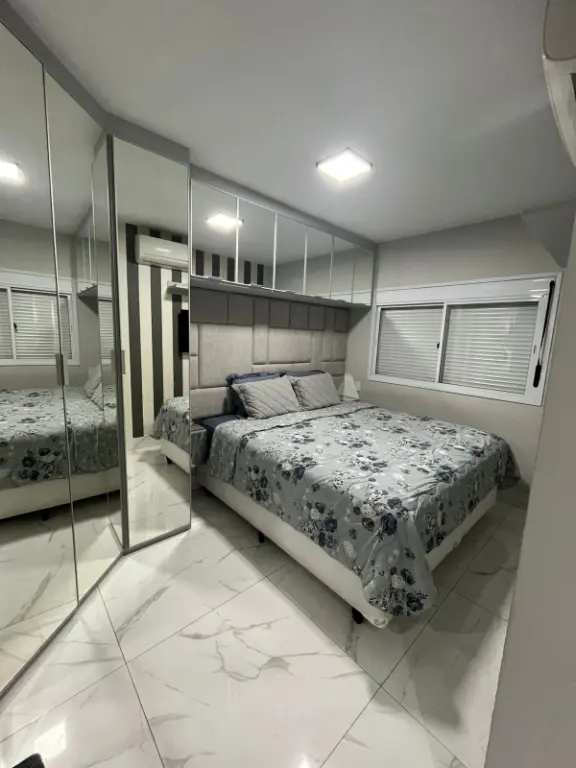 Apartamento de 67m², totalmente reformado, no 9º andar com vista livre, sala ampliada, sacada nivelada com sala, envidraçada e com persiana, 2 dormitórios, sendo 1 suíte com ar condicionado, móveis planejados em todo o imóvel, pia e lavatório em quartzo, telas de proteção, fechadura eletrônica e 1 vaga de garagem.