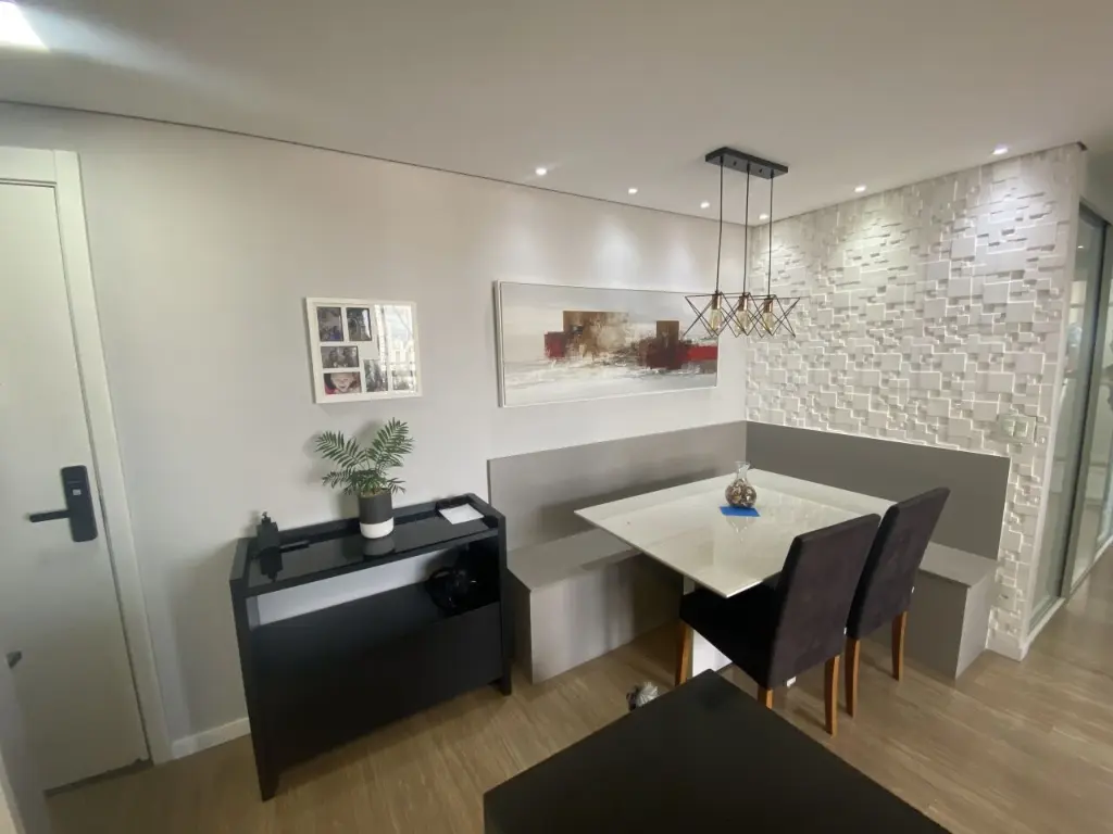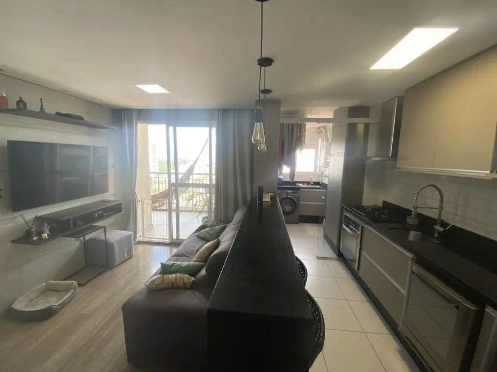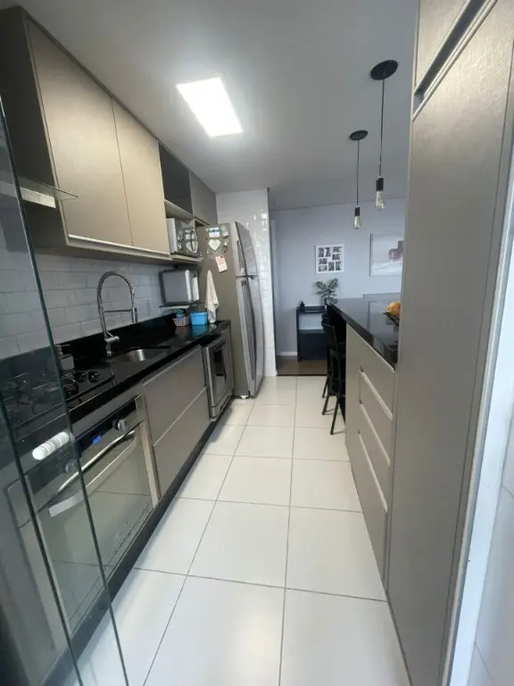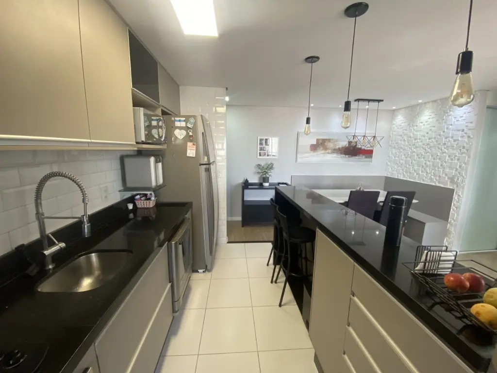 Com 3 dormitórios, 1 suíte com closet, sala ampla para dois ambientes com canto alemão e varanda estendida e envidraçada com sol da manhã, cozinha americana com armários planejados balcão, área de serviço e 1 vaga de garagem.