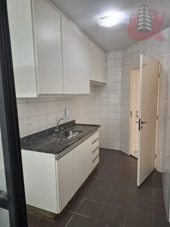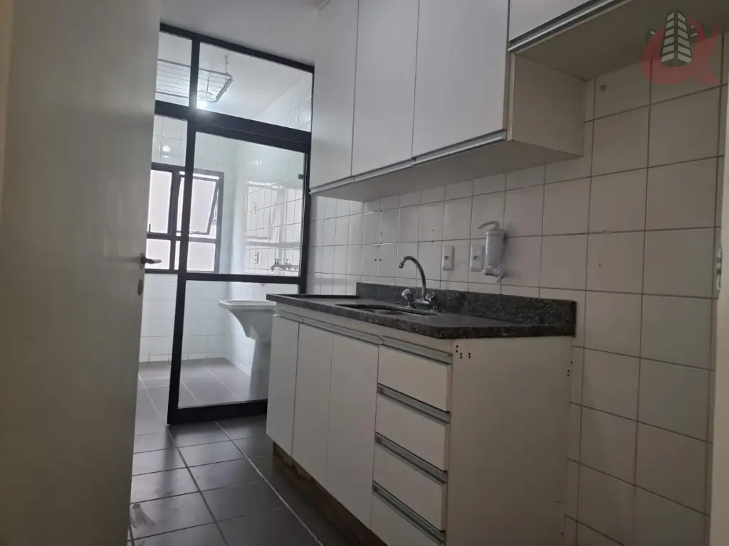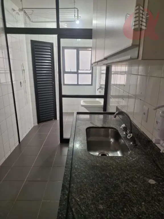 Cozinha fechada com janela ampla na lavanderia. Repleto de armarios. Divisoria entre cozinha e lavanderia. Banheiro de Serviços na lavanderia.