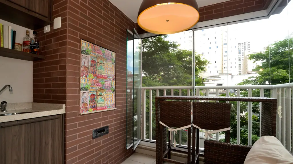 - Varanda Gourmet com Charme Particular: Uma área gourmet completa com churrasqueira revestida em tijolinhos, fechamento em vidro e uma vista relaxante para o verde. O lugar perfeito para o café da manhã ou aquele churrasco especial no final de semana.