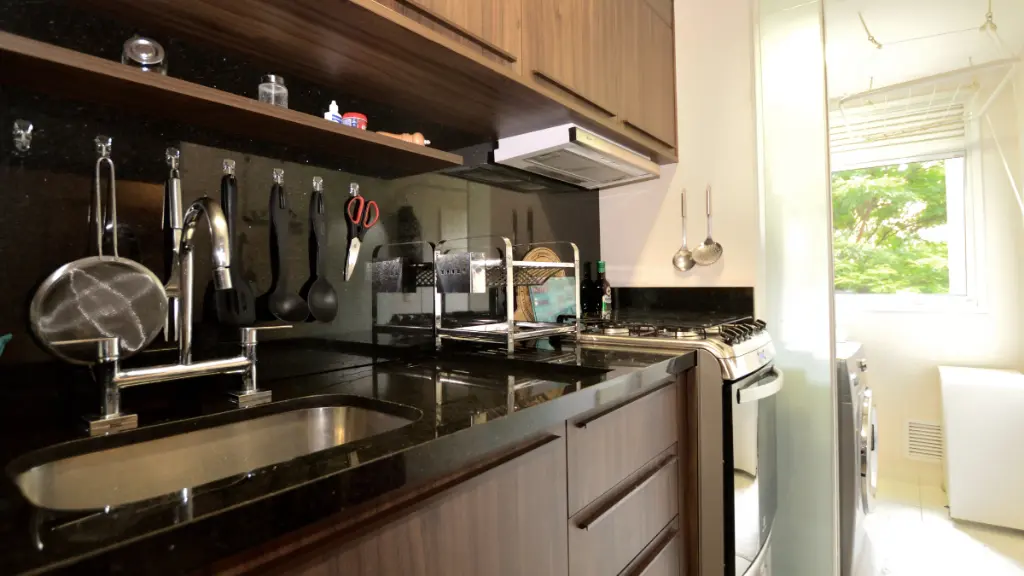3) Área de serviço isolada e funcional, com espaço para máquina de lavar e lava-louças.