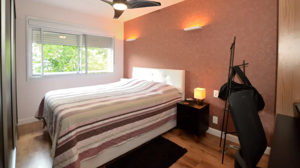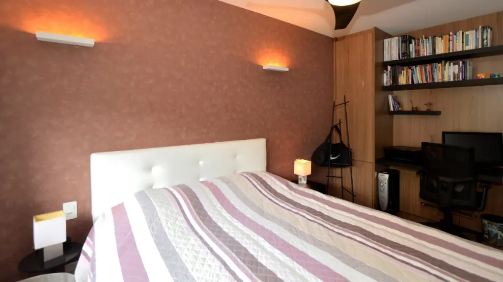 - Suíte Master: Um dormitório amplo, com marcenaria planejada impecável e uma atmosfera de tranquilidade para o seu descanso.