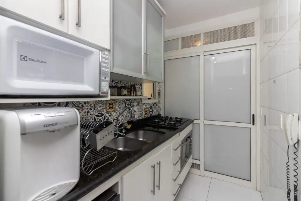 Para sua conveniência, o condomínio possui elevador, lavanderia, zelador e segurança 24 horas. Aproveite o deck e o jardim bem-cuidados para momentos ao ar livre. O imóvel oferece uma vaga de garagem coberta, garantindo a segurança do seu veículo.
