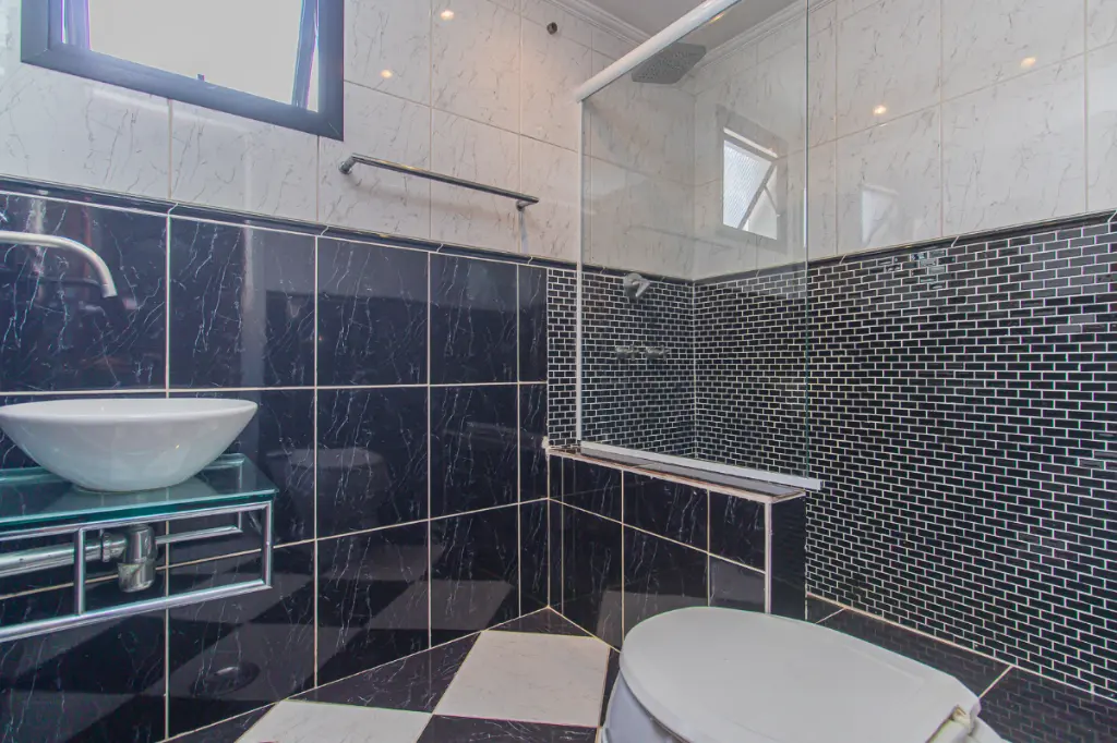 Os dormitórios são confortáveis e bem ventilados, atendidos por um banheiro, além de lavabo, oferecendo praticidade tanto para o dia a dia quanto para receber visitas. O imóvel conta ainda com quarto e banheiro de serviço, agregando funcionalidade à planta.