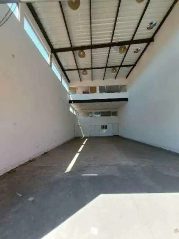 salão com 105 metros, 2 mezaninos, 4 banheiros, copa, 4 vagas de garagem, altura do pé direito 7,5 metros