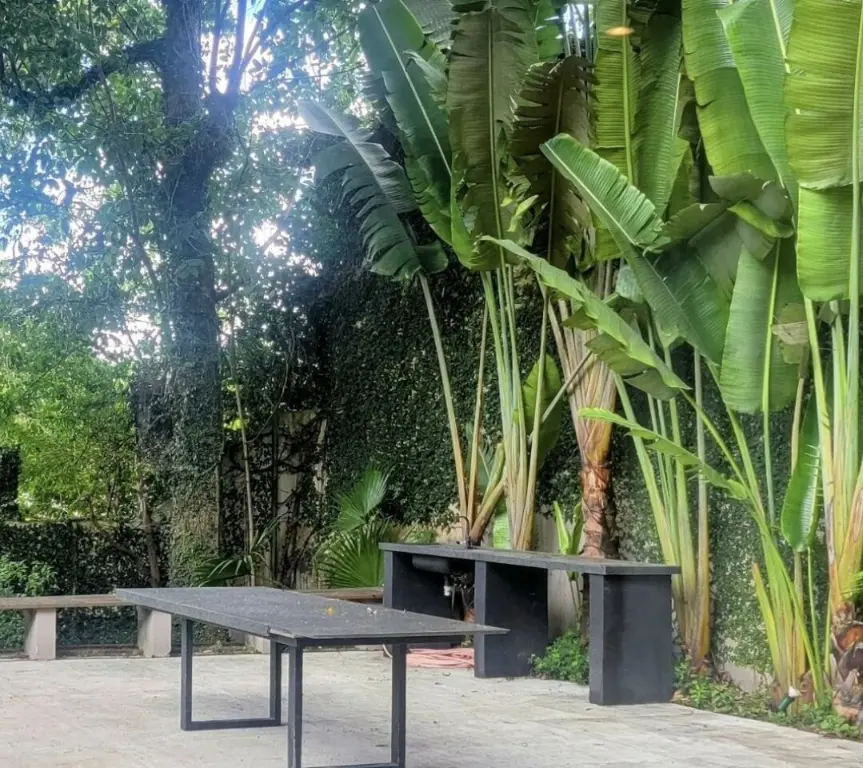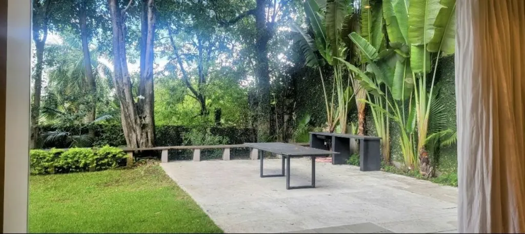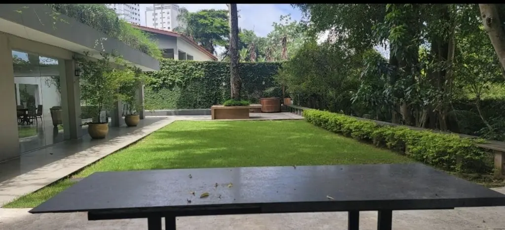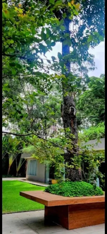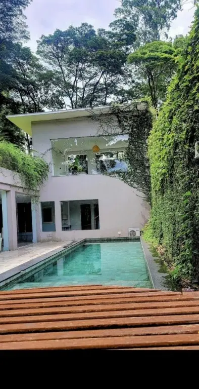A área externa é um verdadeiro refúgio: rodeada por uma área verde incrivelmente linda, oferece contato direto com a natureza, além de uma piscina ideal para momentos de lazer e relaxamento.