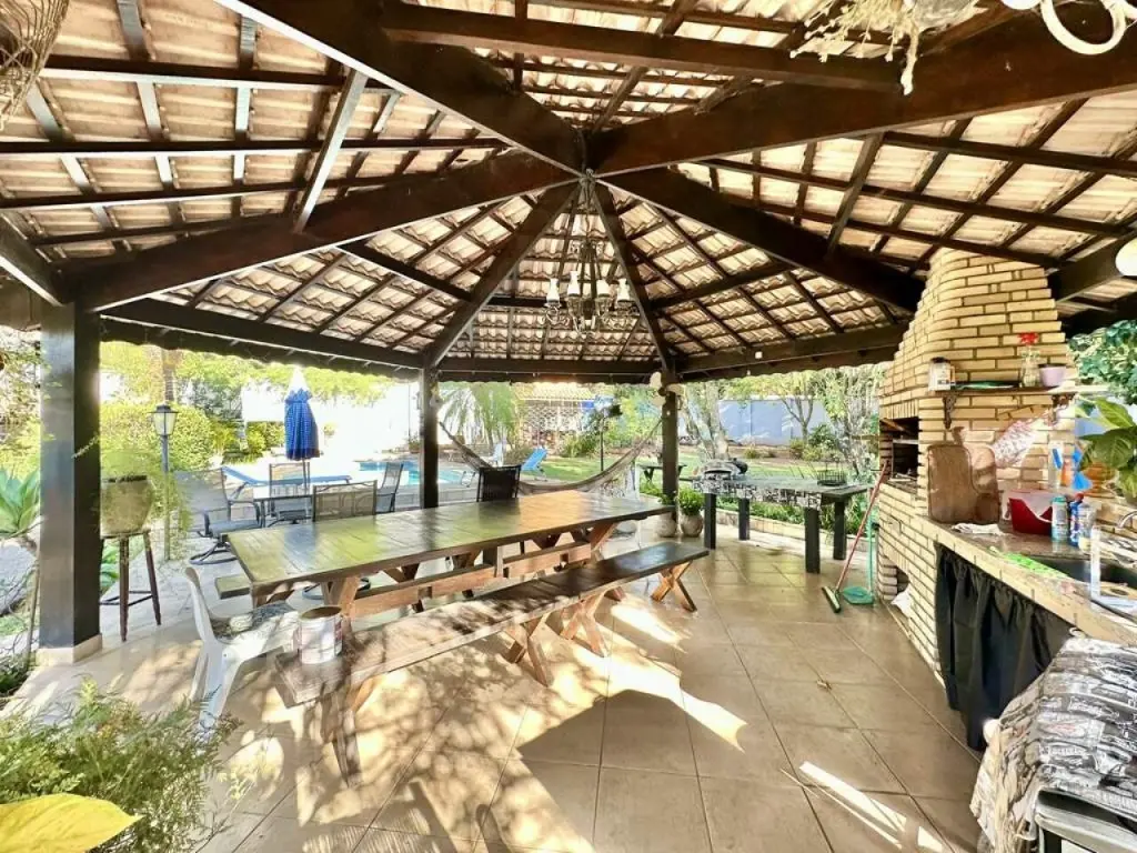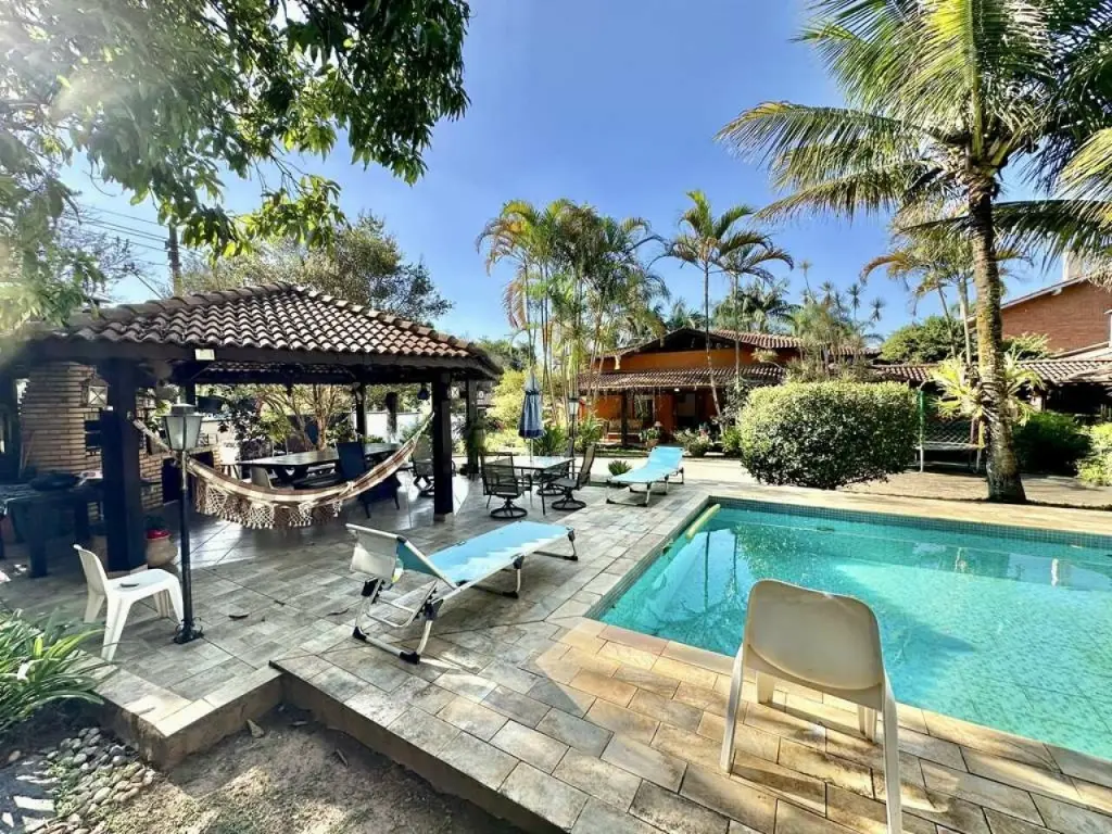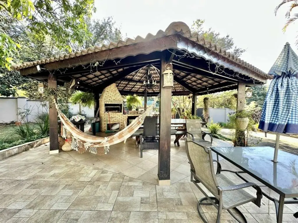 Propriedade integrada e avarandada com vários ambientes, voltada para o lazer e jardim, com piscina e anexo gourmet.