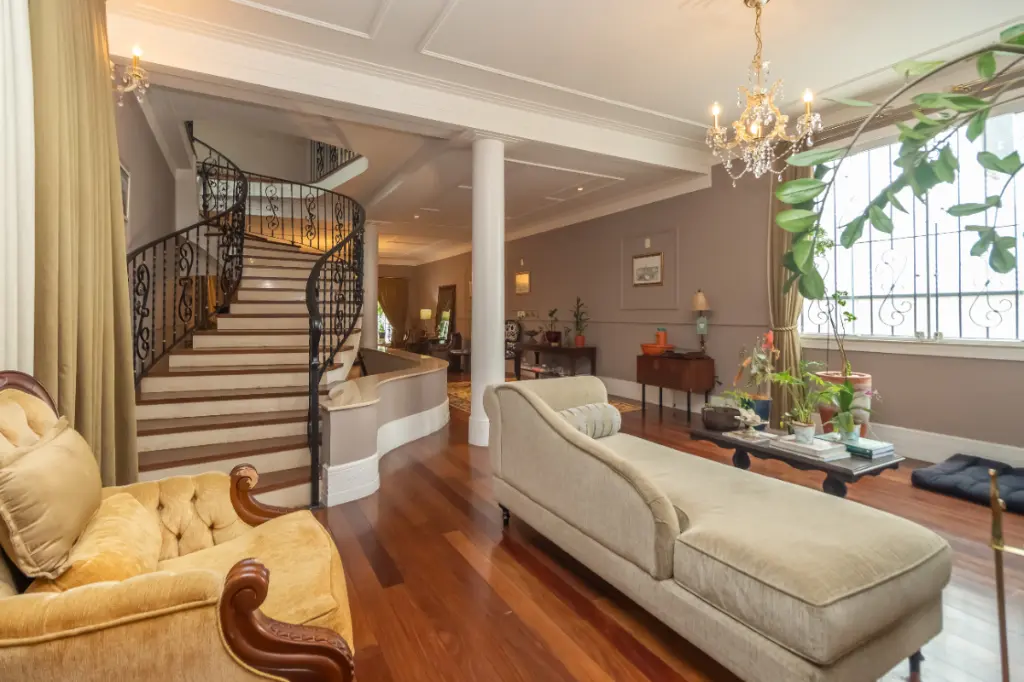 A casa é puro requinte, com arquitetura clássica, ambientes amplos e arejados, salas de estar, jantar, sala de lareira e home theater confortáveis e espaçosas, escritório e todos os ambientes adornados por uma escada deslumbrante, uma verdadeira obra de arte, que integra todos os ambientes da casa.