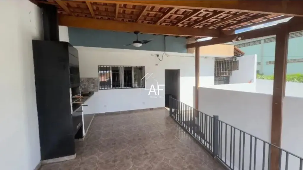 Quintal com churrasqueira, pia e fogão, cobertos - ideal para reunir a família