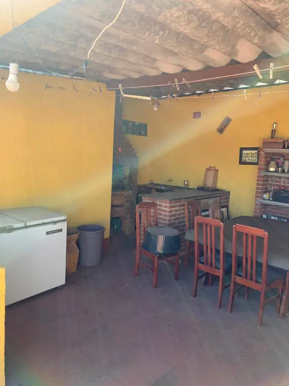 Salão coberto com churrasqueira e pia, perfeito para confraternizações e momentos de descontração;