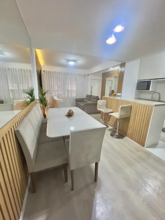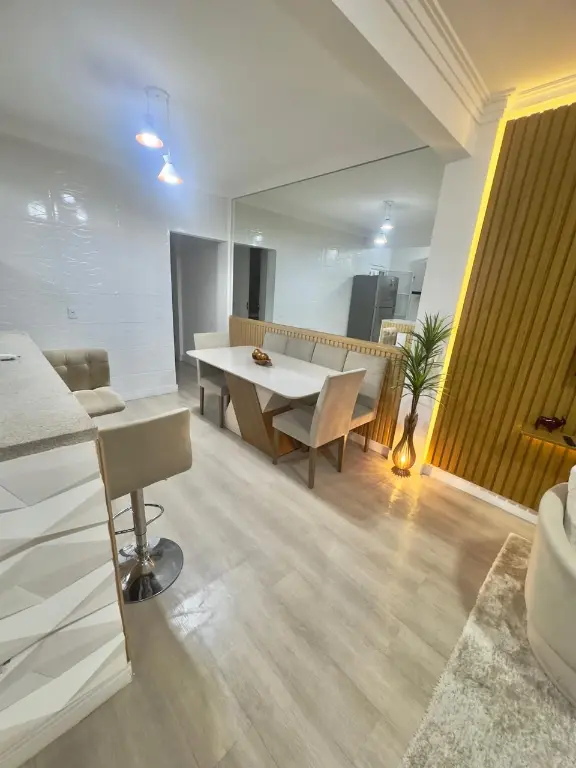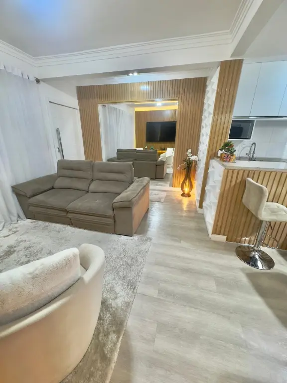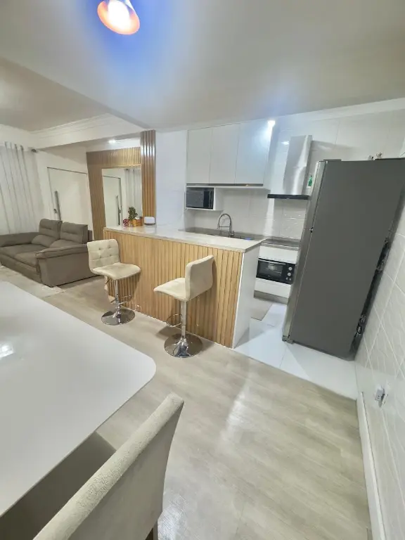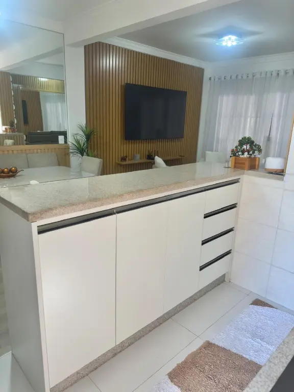 Casa térrea totalmente mobiliada com móveis de extremo bom gosto, 125m, 2 dormitórios com armários e camas, sendo uma suíte com closet, TV de 46?, Ar-condicionado, sala para dois ambientes com tv 75, sofá, mesa de jantar e cadeiras, cozinha americana com armários planejados, geladeira e fogão, área de serviço, quintal com churrasqueira e 1 vaga de garagem com portão automático. Com todos os móveis e eletros inclusos. Tudo em estado impecável Localização Estratégica, próximo a Avenida Mutinga, a ponto de ônibus, padarias, supermercados, farmácias, academias, Bancos, casa lotérica, perfumarias, lojas e restaurantes na região.