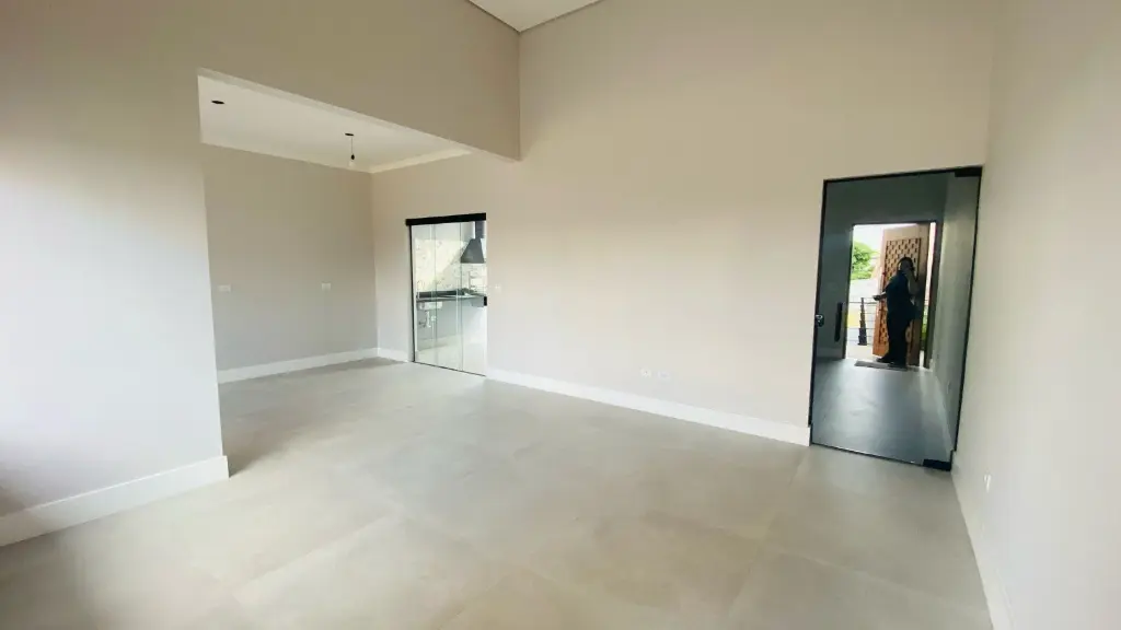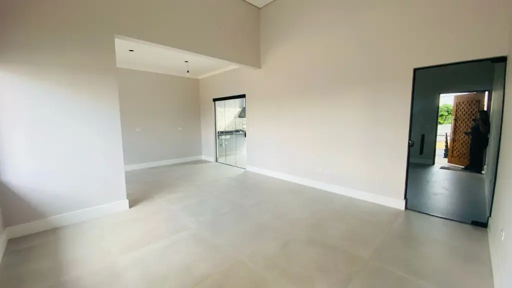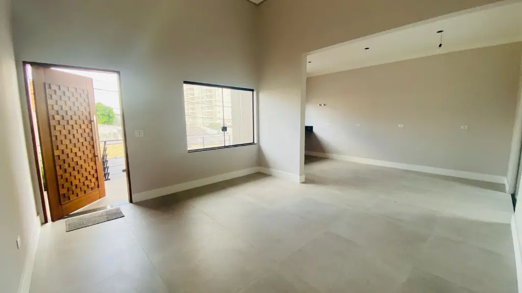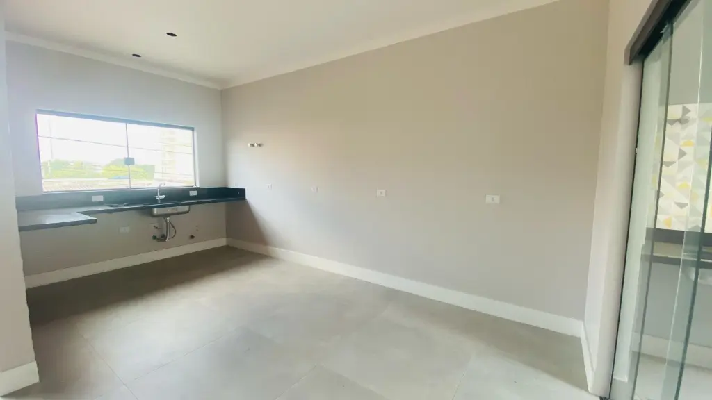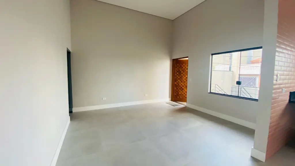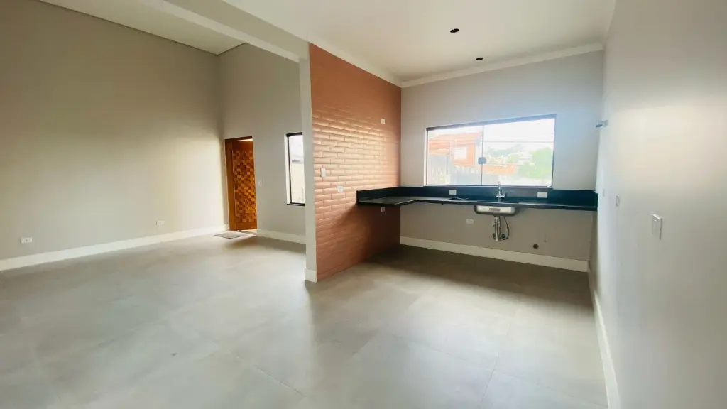 1. Belíssima casa térrea nova com 3 dormitórios sendo 1 suíte, sala 2 ambientes com pé direito bem alto, cozinha ampla com pedra em mármore, área gourmet com churrasqueira e quintal grande, lavanderia fechada. área verde e jardim.