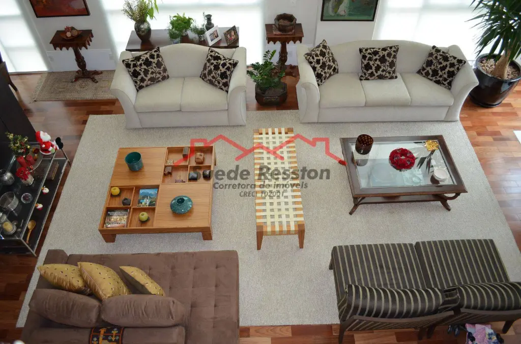 A área social é um dos grandes destaques: uma sala ampla e bem distribuída, com lareira, perfeita para momentos de convivência e recepção de convidados. O pé-direito alto valoriza ainda mais o espaço, garantindo abundante iluminação natural e ótima ventilação, além de uma agradável sensação de amplitude.