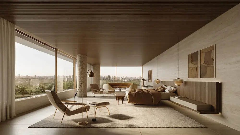 A torre mais alta do Jardins Na Dr. Melo Alves, 555, entre a Estados Unidos e a Oscar Freire, uma arquitetura que se ergue para além do alcance do olhar, em mais de 3000 m² de terreno.