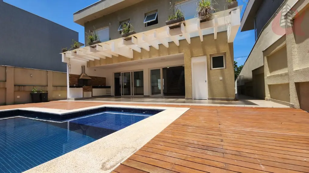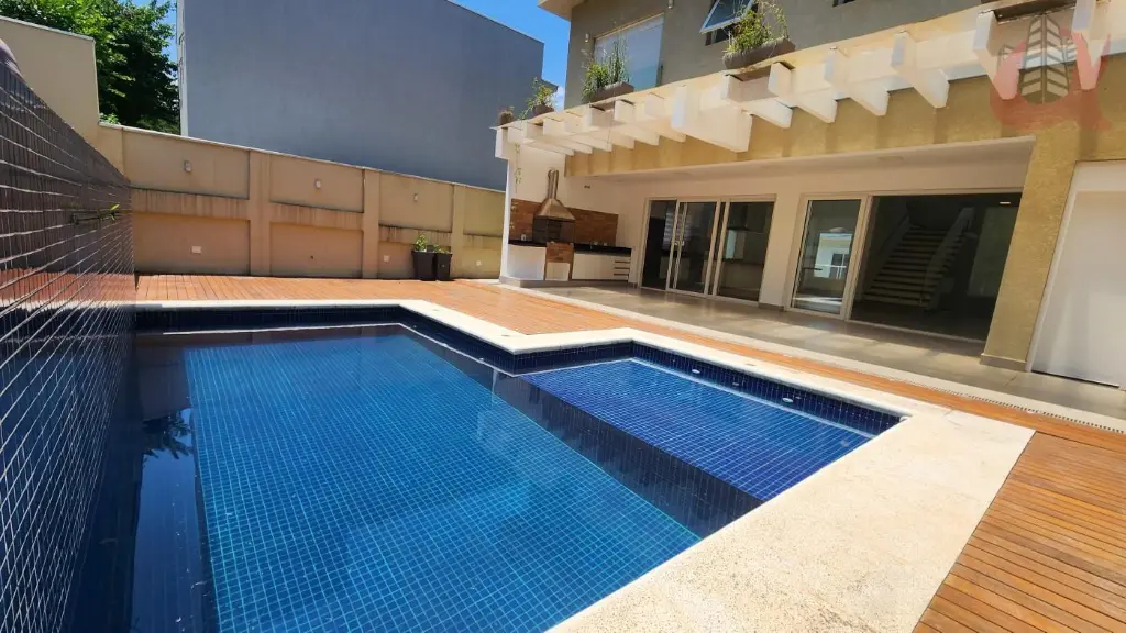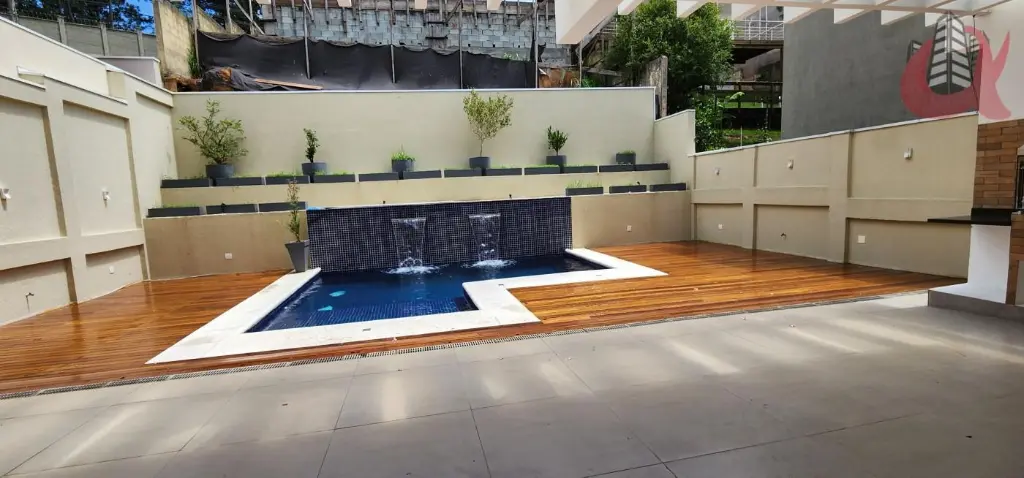 4 suítes sendo a master com hidromassagem e ducha ele e ela. cubas duplas. Lazer com piscina, cascata, banheiro completo na area gourmet e espaço gourmet com churrasqueira a carvao.