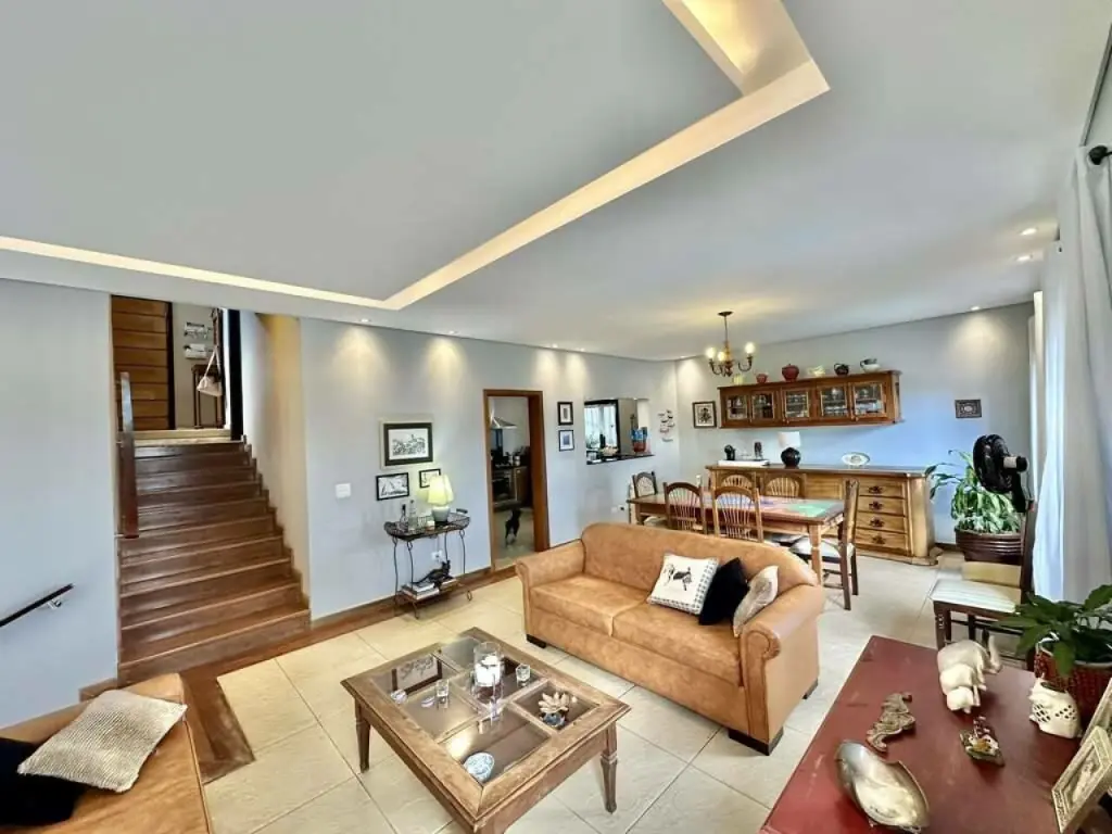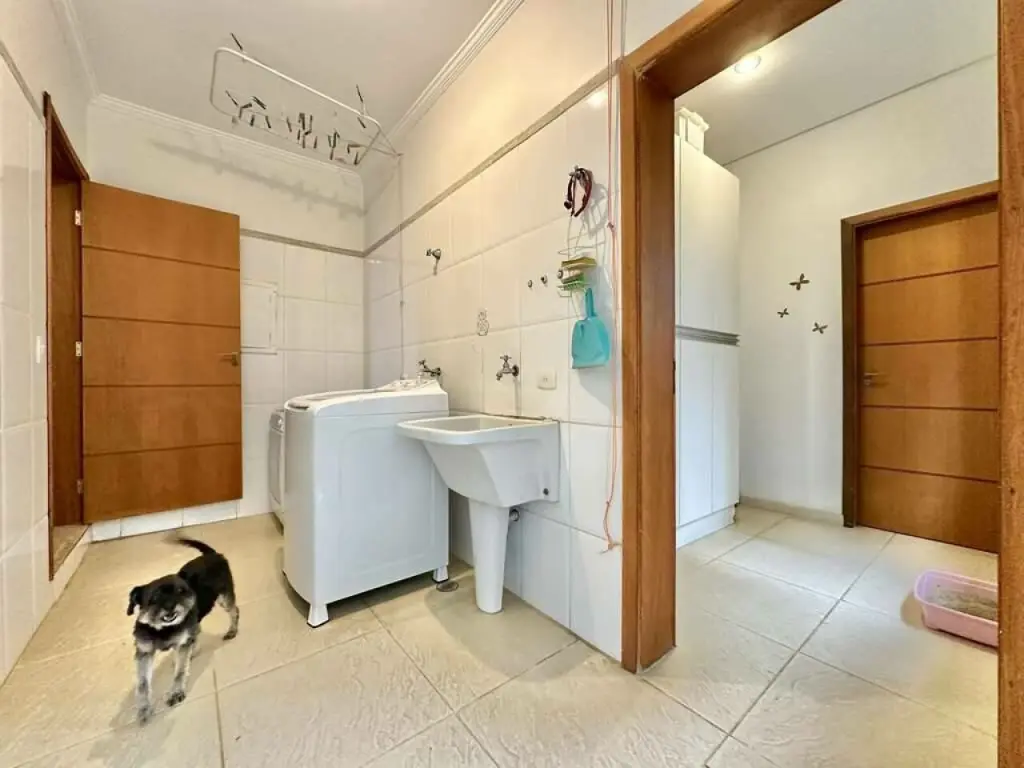 Na parte inferior da casa, tem amplo espaço multiuso com banheiro/vestiário com acesso interno e externo. Ideal para criar um apartamento independente, escritório, consultório, biblioteca, academia, sala de jogos, home theater, brinquedoteca ou quarto de hóspedes.