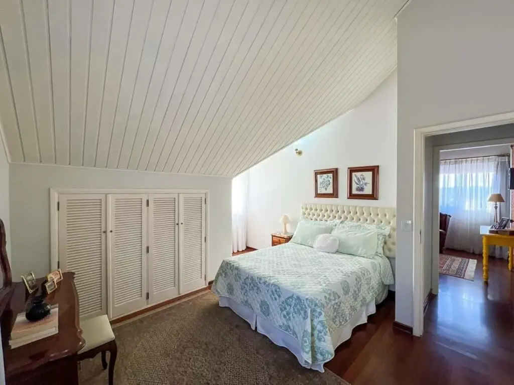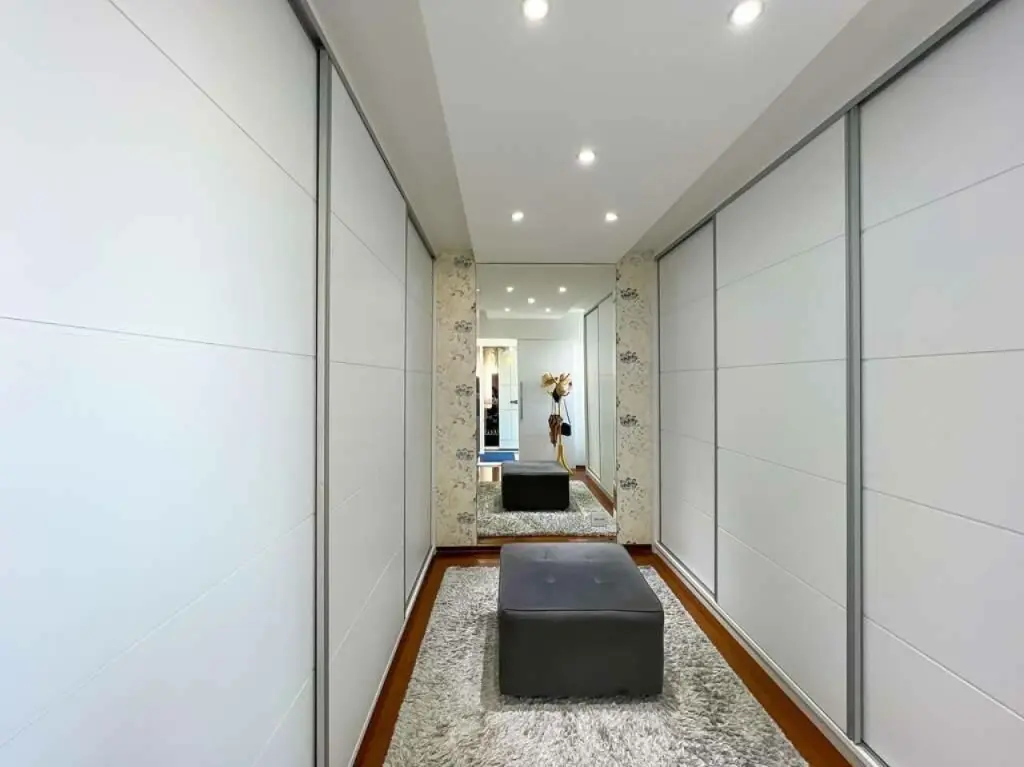 Suíte master com closet espaçoso e com armários com portas de correr.