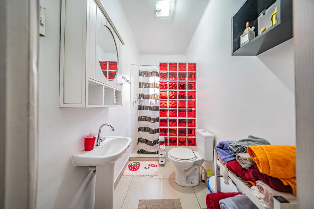 125m², vaga para 1 automóvel, sala, cozinha, banheiro no andar térreo, um quintal grande dá tranquilamente para fazer seu churrasco, comporta cerca de 20 pessoas, mais 1 banheiro na parte de trás do sobrado, no andar de cima ficam os dormitórios, ar condicionado na sala e dormitórios.