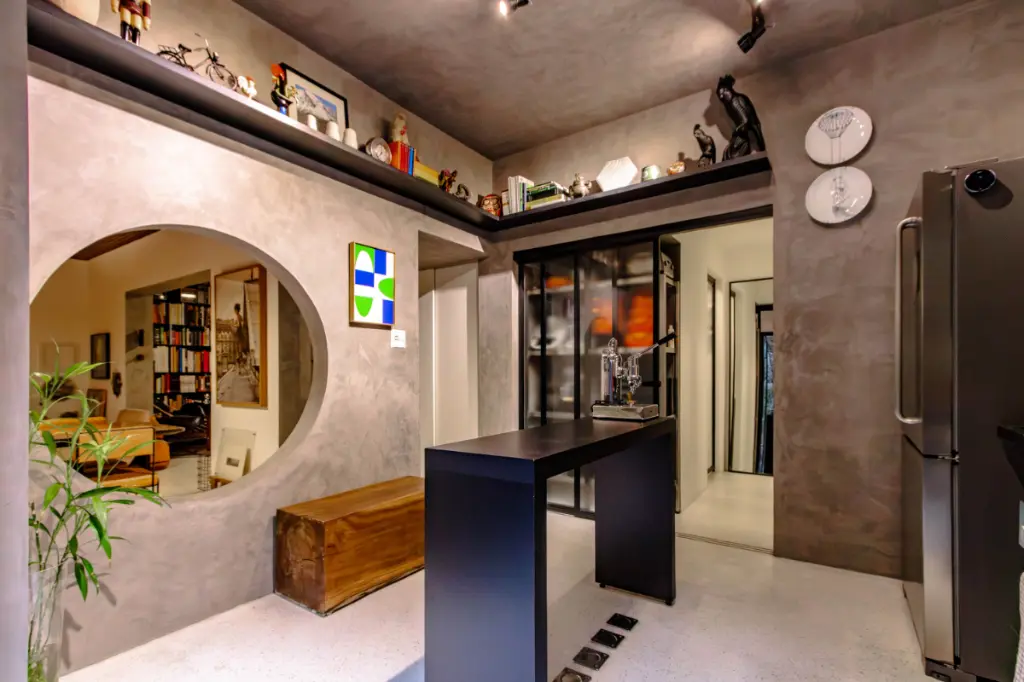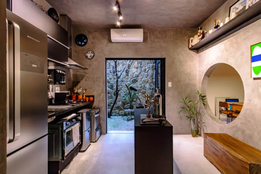 Com 160 m² de área privativa, todos ambientes da casa foram cuidadosamente idealizados pelos proprietários que são do ramo da arte, moda e fotografia.