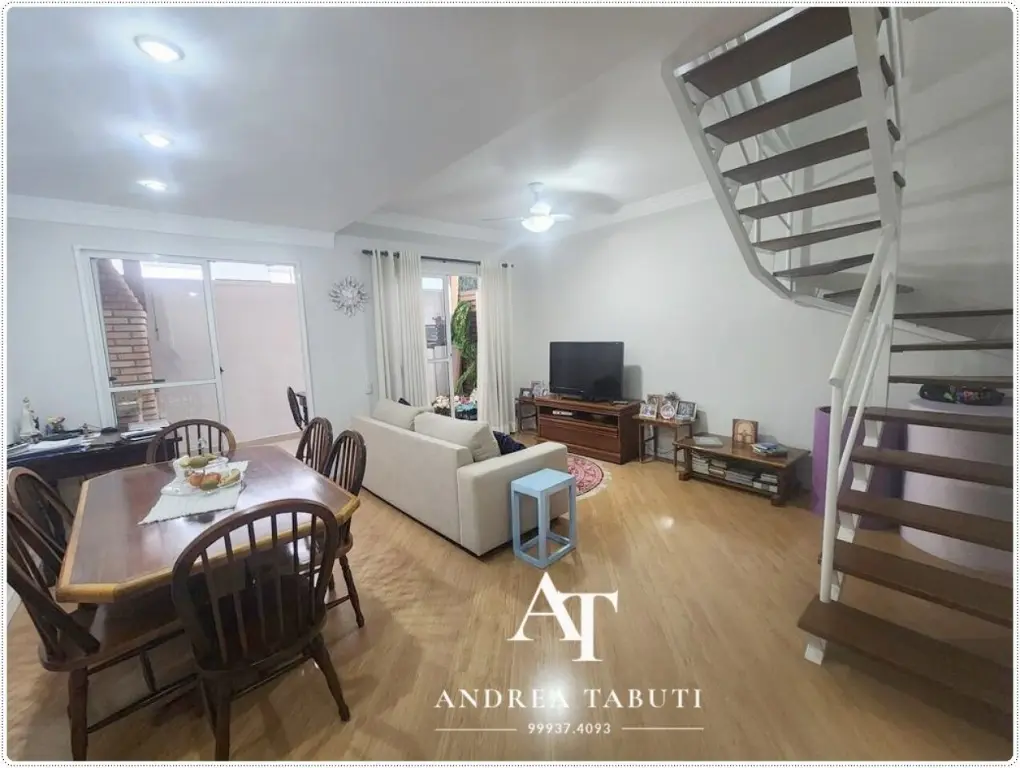 Casa em condomínio fechado com 3 dormitorios (1 suite), 2 vagas de garagem, cozinha com armários embutidos, sala para 2 ambientes, quintal com churrasqueira, lavabo, área de serviço, 1 banheiro social que atende os dormitorios.