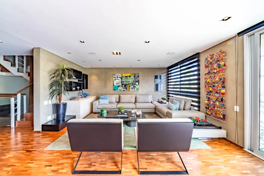 Os ambientes desta casa foram projetados para aproveitar ao máximo a iluminação natural, criando espaços leves e agradáveis. Os acabamentos de alto padrão valorizam cada detalhe, trazendo sofisticação e conforto para o dia a dia com muito bom gosto.