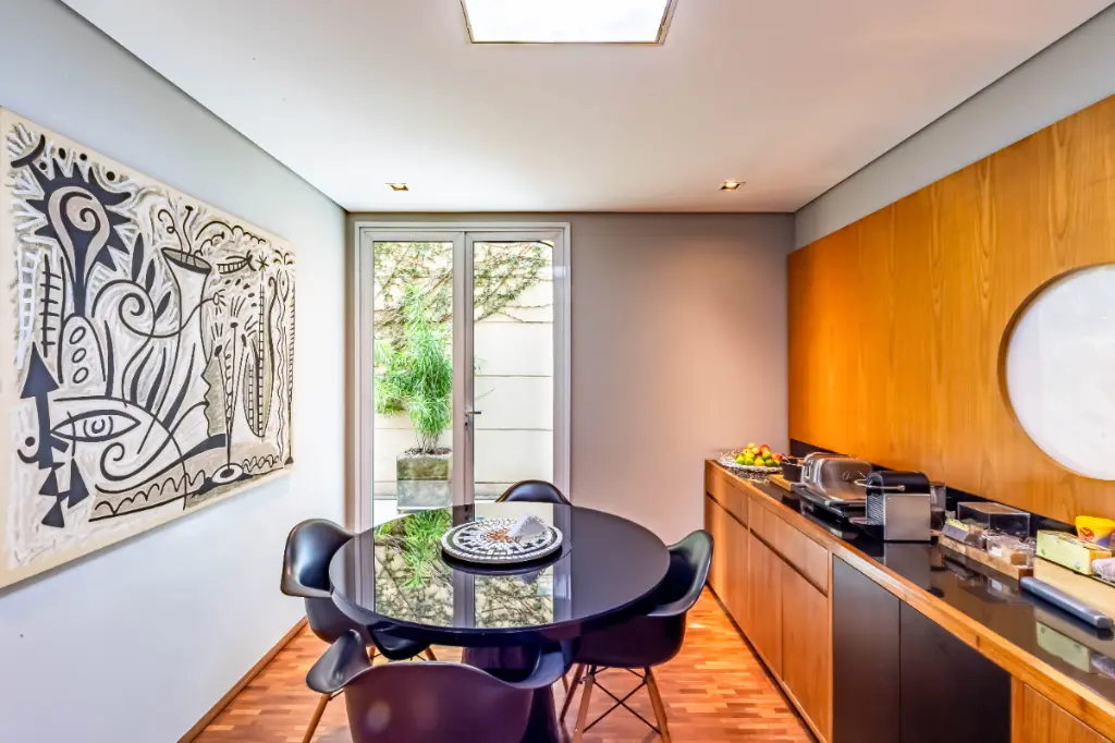 A área externa é um dos grandes destaques, com uma piscina relaxante em meio a um espaço tranquilo e bem cuidado. Um convite para curtir momentos de descanso, receber amigos e aproveitar a atmosfera serena que define a vida em Alto de Pinheiros.