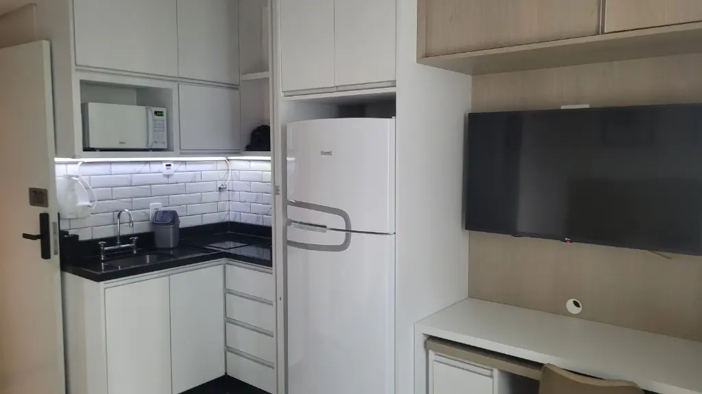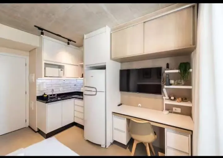 Belíssimo e aconchegante Studio de 19m² no bairro da Consolação totalmente mobiliado pronto para morar sendo 1 cômodo com banheiro possuindo armários, guarda roupa, geladeira, tv, cama box, cooktop, airfryer, ar - condicionado, panela e utensílios.