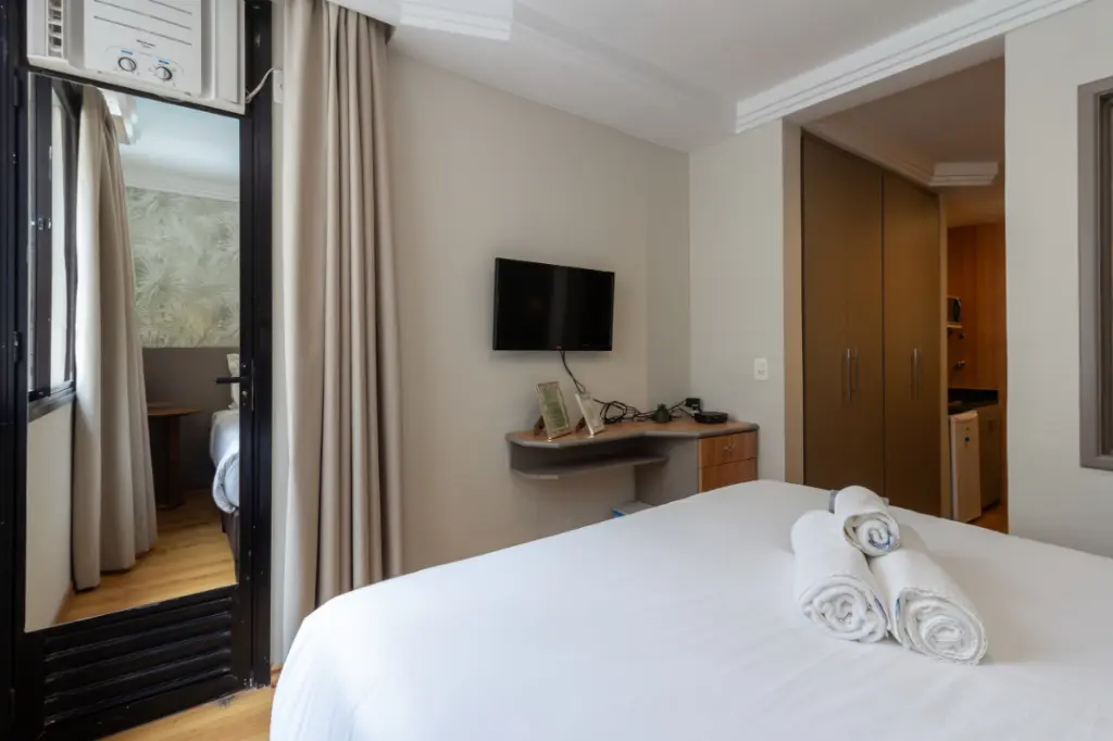 A infraestrutura de lazer e serviços agrega valor à rotina dos moradores e hóspedes: piscina ao ar livre, academia equipada, sauna, lavanderia, arrumação diária e Internet disponível são alguns dos diferenciais que tornam o cotidiano mais confortável e eficiente.