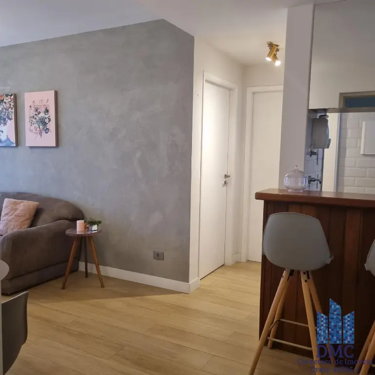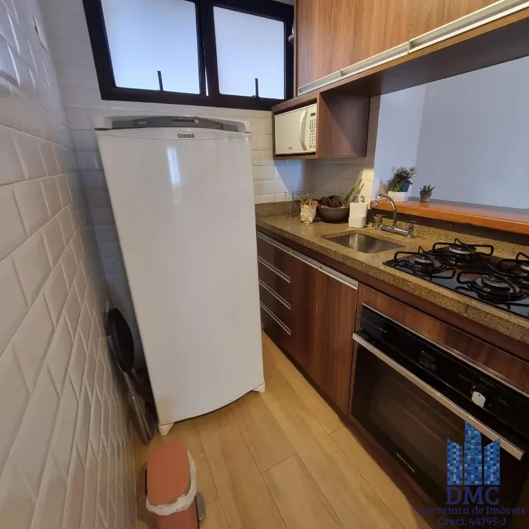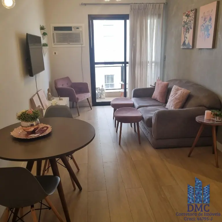 Apartamento mobiliado localizado no decimo sexto andar com boa ventilação e luminosidade. Possui: 1 dormitório, living com varanda, banheiro social e cozinha americana. Há uma vaga de garagem.